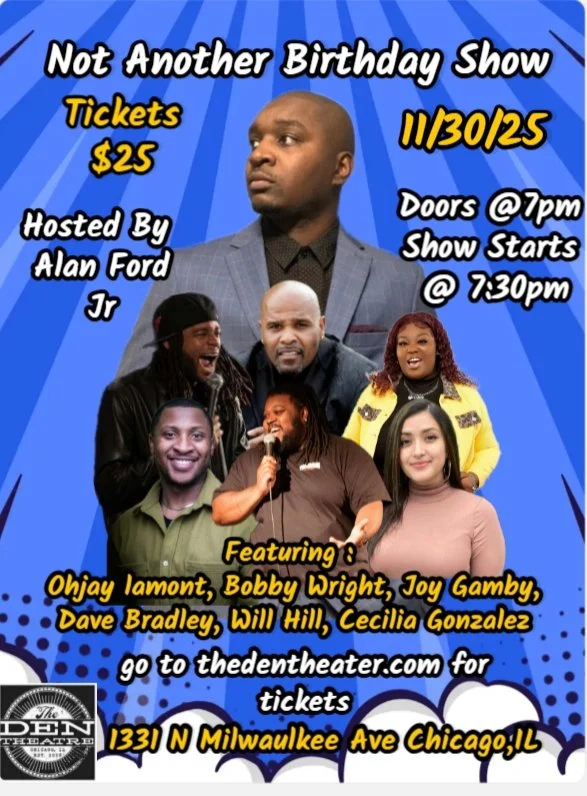 Come, laugh, and celebrate the birthday of Alan Ford jr with some of his favorite comics from Chicago. you will be guranteed a good time, Why? Because its his birthday.